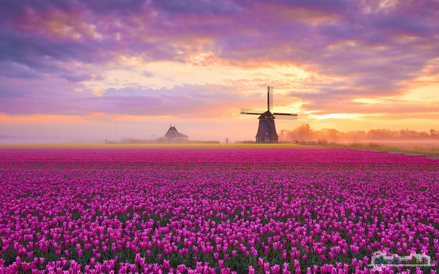 Wallpaper image Field Tulips Sunrise | 1440x900