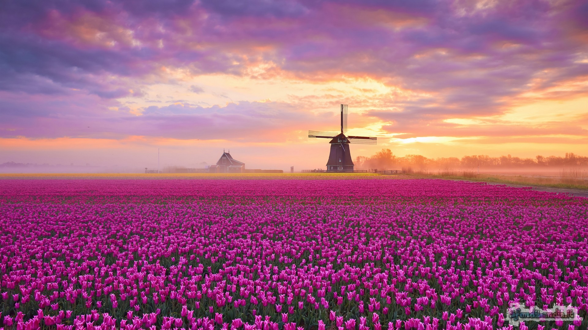 Wallpaper image Field Tulips Sunrise | 1920x1080